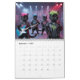 A black cat is seen in a humorous and sweet depiction in each calendar month.
