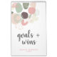 Ayez vos objectifs devant vous et fêtez vos victoires avec ce calendrier moderne parfait pour les objectifs personnels, d'affaires, de fitness et plus encore. Le design présente des formes abstraites et des gribouillis en rose pastel et en menthe sur la couverture et chaque page. Pour chaque mois, il y a une liste pour les buts et les victoires et un espace pour les notes. Modifiez et personnalisez le titre, le nom et les en-têtes. Le texte est en gris et rose, en lettres et en caractères sans serif.