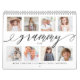 Envoyez un beau cadeau personnalisé à votre Grammy qu'elle chérira. Petit-enfants personnalisés et calendrier de collage de photos de famille pour afficher vos propres photos et souvenirs de famille spéciaux. Le design du capot avant est composé d'un simple 8 collage photo avec "Grammy" conçu dans un magnifique style manuscrit en écriture noire. Chaque photo est encadrée d'un simple cadre doré. Customisez avec les petits-enfants et les noms des membres de la famille. Chaque mois présente une seule image grandeur nature avec le mois écrit en calligraphie noire élégante légèrement affichée sur chaque photo.