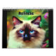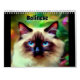 Calendrier avec douze images de chats balinais au repos et en jeu.