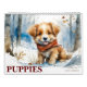 Calendrier Couleur d'aquarelle des chiots mignons Art 12-Mois