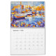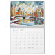 This art calendar features twelve vibrant cityscapes inspired by cubism and modern impressionism. Each month showcases a unique waterfront scene: riverside cafés, sailboats in the harbor, bridges spanning urban skylines, and architectural silhouettes bathed in shifting light.
