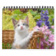 Chatons chatons amusants, frisonnés et mignons de différentes couleurs jouant dehors dans les jardins et les granges, au milieu de fleurs aux couleurs vives et de l'idylle rurale, il vous fait sourire. Jolies photos de chats prises par Katho Menden. Ce calendrier est une idée cadeau pour les amoureux de les chats.
