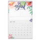 Ce calendrier féminin d'aquarelle comporte un calendrier mensuel de 12 pages (ou 24 si vous sélectionnez cette option) vous pouvez customiser le texte et aussi le style de la grille de calendrier sous, il comprend également une section pour organiser des tâches ou des objectifs pour le mois, une zone de notes et aussi une zone désignée pour un devis qui vous inspire pendant le mois. Chaque page présente une belle pièce en lettres avec le mois, les fleurs d'aquarelle et la verdure. Vous pouvez personnaliser la couverture avant avec l'année et votre texte personnalisé ainsi que le dos pour faire de ce beau calendrier 2019 votre propre.
