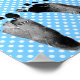 Empreintes de bébé noires sur fond à pois bleu et blanc pour jeu de Baby Shower.