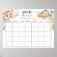 Le modèle de calendrier pour deviner la date d'anniversaire du bébé pour la baby shower présente des citrouilles aquarelles, de la verdure et des éclaboussures de paillettes dorées. La couleur vert clair (arrière-plan) est modifiable. Invitez vos invités à signer le calendrier avec leurs prédictions pour la date d'anniversaire du bébé. L'invité qui devine la date de naissance (ou la plus proche) gagne le jeu ! Le calendrier sera également un excellent souvenir pour les futurs parents. Allez sur le lien "cliquez pour personnaliser davantage" pour ajouter du texte et/ou accéder aux outils de modification.