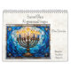 Each month of this fun calendar has a different AI-generated stained glass style image. December is a Hanukkah menorrah. There are also calendars listed with December themes for Kwanzaa and Christmas. The images were AI-generated by TheCalendarShoppe using Artistly.