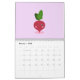 Un calendrier de 12 mois avec des illustrations mignonnes en style Kawaii : hippo, citron, radis, licorne, lapin, grenouille, avocat, tomate, poire, pomme, citrouille, champignon, arbre de Noël et vache. Parfait pour une année marrante !