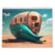 Desert whale house in 3d, in the style of vibrant pop surréaliste m, cyan and brown, distinc tic noses, maritime scenes, transport