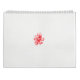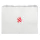 Le design présente une représentation graphique d'une fleur avec de nombreux pétales. Les pétales sont dépeints avec des traits de griffes rouges, donnant l'impression d'un croquis ou d'une peinture abstraite. Au centre, un motif circulaire dans les tons rose et violet évoque le coeur de la fleur. L'arrière - plan est blanc clair, ce qui contraste avec le rouge vif des pétales.