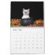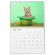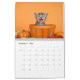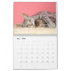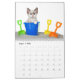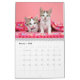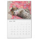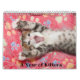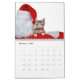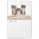 Calendrier de 12 mois avec images de chatons en différentes saisons et lieux de vacances.