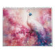 This calendar features beautiful fantasy pink peacocks in an abstract style with flowers, foliage, nature and more.