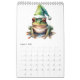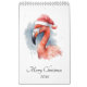 Calendrier avec sur la couverture une aquarelle d'un flamant rose portant un casquette de noël d'hiver rose en style noël. Chaque mois a un animal différent en aquarelle.