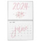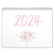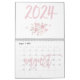 Calendrier mural moderne 2024 avec de belles illustrations de texte rose et rose écrit dans le calendrier.
