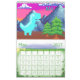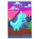 Funny Pixel Gamer Pixelated- Dinosaur Illustration Single Page Calendar; This funny nostalgic design features pixel art of a Dinosaur in nature. There is mountains, fir trees, and clouds in colorful sky. In front pixelated font "START" and "20XX" for beginning the new year and in back pixelated font "GAME OVER" for ending the year, I've used a pop color palette, to give the art a 90s Video Games Aesthetic.