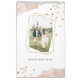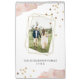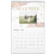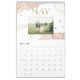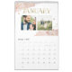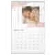 Ce calendrier 2024 tendance et élégant présente des motifs géométriques faux or et des accents pointillés, avec des éclaboussures d'aquarelle rose vif et différentes photos personnelles pour chaque mois.
