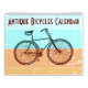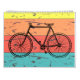Ce calendrier présente des illustrations vintages de bicyclettes avec un arrière - plan rétro sur chaque page.