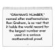 Le " NOMBRE de GRAHAM," appelé après mathématicien Ron Graham, est si vaste qu'il détienne le record mondial pour le plus grand nombre jamais utilisé dans une preuve mathématique sérieuse. Le nombre de Graham est beaucoup plus grand que d'autres grands nombres tels qu'un googol et un googolplex. En fait, l'univers observable est trop petit lointain pour contenir une représentation écrite du nombre de Graham.
