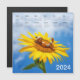 Calendrier magnétique amusant 2024 sur le frigo avec elfe de glacier posé sur le tournesol