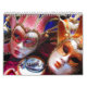 Un calendrier coloré montrant les personnes différentes de masques portent pour le Carnevale à Venise. Il y a des masques de tous les types et la vraie expression derrière les masques est toujours différente au masque lui-même.