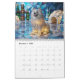 A dog calendar featuring 3d images of twelve medium sized dogs with aesthetic backgrounds.