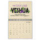 Ce calendrier comporte le nom, "YESHUA" (le nom hébreu de Jésus). Le calendrier inclut 12 images de YESHUA avec des noms ou des titres et écritures saintes liées à chacun. -----------------------------------------------------------------------------------------------