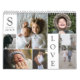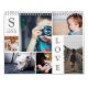 Modern Love White and Grey Color Block Family Photo Collage Christmas & New Year Calendrier mensuel - avec mot d'amour personnalisé, nom de famille, année et lettre initiale, le tout arrangé dans une élégante grille. Ce design moderne et élégant affiche 6 de vos propres photos magnifiquement sur la couverture, 6 de plus sur le dos, et 1 grande photo pour chaque mois. 24 Photos au total. Disponible dans plusieurs coloris pour correspondre à n'importe quel décor de chambre. Fabrique un cadeau de vacances ou de conservation de Noël pour grands-parents, parents, famille, amis et proches. Customisez-le facilement avec vos photos et votre texte personnalisé.