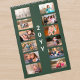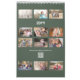 Add your favorite photos to create your own modern 2026 calendar. The 12 images you upload for the months will automatically appear in grids on green on the front and back covers. Add the year in the sidebar and it will appear on the cover and back in a bold modern font. You can also customize the language, which holidays appear, and calendar format in the sidebar. Makes a great gift!
