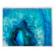Pierres et minéraux sont une nouvelle tendance pour l'année! Cette impression présente et une image rapprochée d'une pierre à géométrie bleue vibrante, avec des petits cristaux. Ajoutez vos initiales ou votre nom si vous le souhaitez ! Bleu Turquoise Géode Pierre Simple Moderne Calendrier Mur