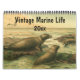 Illustration vintage de 12 mois calendrier de la vie marine avec différentes créatures marines, y compris les crustacés, les poissons, les tortues de mer, les phoques, les lions de mer, les poissons tropicaux, les coraux et plus !