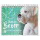 Les nombreux visages hilarants et les humeurs d'un boxeur blanc sur un calendrier mural. Personnalisable par année et par style.
