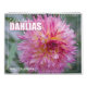 Célébration du calendrier mural de Dahlias présente 12 mois de photos originales montrant une variété de fleurs de Dahlia.