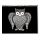 Caricature de croquis de hibou avec corps en forme de coeur.