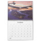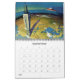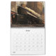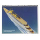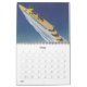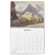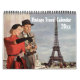 Calendrier de voyage de 12 mois illustrant des scènes de voyage, y compris des bateaux de croisière, des avions, des trains, des voitures et un dépôt de bus.