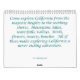 Come explorent la Californie des tailles majestueuses aux rivages apaisants. Montagne, lacs, cascades, vallées. Oiseaux, fleurs, insectes, plages. Toute la ces derniers fait à la Californie l'explorant une aventure interminable. Ce calendrier inclut des photos de parc national de séquoia, Piedras Blancas, surveillance maximale de mule dans la réserve forestière de séquoia, les automnes de Tokopah, le lac Tahoe et les plus.