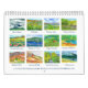 Un calendrier avec douze paysages saisonniers différents peints à la main en aquarelle. Les paysages sont de la région du nord du Nevada où j'habite, de la Sierra orientale, du lac Tahoe, et un vignoble de Napa Valley. La couverture arrière a une petite version de chaque peinture avec le titre.