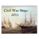Calendrier 2011 avec des images de navires de guerre civile, de planches de fer, de moniteurs et de bateaux à vapeur des flottes d'eau bleue et brune.