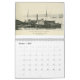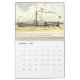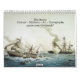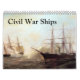 calendrier avec des images de navires de guerre civile, de planches de fer, de moniteurs et de bateaux à vapeur des flottes d'eau bleu et marron.