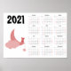Calendrier Ourson rose 2021 Affiche