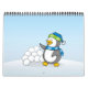Un petit dessin de pingouin agitant devant une pile de boules de neige.