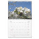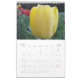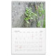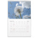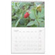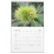 Un calendrier de 12 mois avec des photos de la nature : chenille à queue noire, champignon chanterelle, marronnier, horloge à pissenlit, tournesol, branche de sapin enneigé, fraise, tulipe jaune, fraise sauvage, cerf jaune, fleurs d'un arbre fruitier et plante sortant d'un mur !