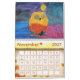 Drôle joli calendrier mural pour les enfants avec une illustration numérique de gros plan symbolique pour chaque mois pointant vers les jours fériés.