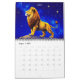 Calendrier en douze illustrations originales des signes des signes astrologiques du Zodiac, avec des cieux bleu profond, étoilés