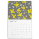 Un calendrier de 12 mois représentant le snowboard, le ski, le basket-ball, le baseball, le golf, le vélo, la natation, le tennis, le football, le patin à glace et le football avec quelques poussins et noix jetés dans.
