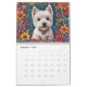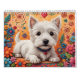 Calendrier Westie montrant 6 x 2 belles images de Westies sur des arrière - plans d'art populaire. (Chaque photo est répétée une fois dans le calendrier).