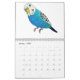 Un calendrier avec l'illustration de perruche pour le chaque mois de l'année