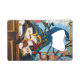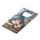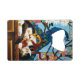 Calico cat jouant avec un dragon chinois rouge devant un vitrail de paon.