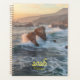 Gorgeous calendar planner with an image captures a scenic California coastal view with waves crashing against rocky formations. The ocean water is a mix of deep blues and foamy whites, creating a dynamic texture. Jagged rocks jut out from the sea, some being struck by powerful waves. The coastline is visible in the background, with mountains fading into a hazy sky.