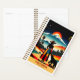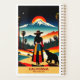 Célébrez la chaleur et la vitalité de "California : Where Sunshine Lives" avec ce planificateur de voyage captivant! Ce planificateur de voyage captivant présente une femme en robe multicolore et un casquette debout à côté d'un ours, à la fois en admirant un paysage époustouflant qui mêle palmiers et montagne enneigée, le tout baigné par la chaleur d'un coucher de soleil spectaculaire. Avec son style rétro et surréaliste, l'oeuvre résume magnifiquement les paysages variés et l'esprit dynamique de la Californie, ce qui en fait un hommage parfait à l'allure enchanteresse de l'État d'Or. Transformez vos rêves de voyage en réalité avec ce planificateur sur le thème du voyage.