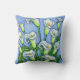 Un tableau coloré stylisé de belles nénuphars blancs Calla fait dans une belle palette de couleurs bleu, vert et blanc sur un oreiller de lancer par Lisa Lorenz
